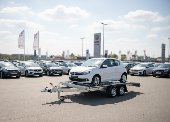 Laweta NEPTUN N27-420 2 atb [GN211] – hamowana, profesjonalna przyczepa do przewozu aut ze stabilną, perforowaną platformą i tandemem osi. Idealna do transportu samochodów w salonach, komisach i serwisach.